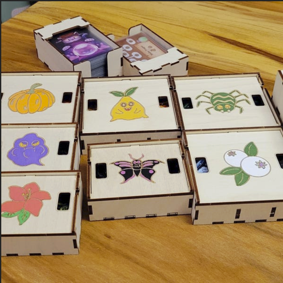 Constructed from high-quality Baltic Birch wood, this organizer boasts durability and precision. The laser-cut design ensures a perfect fit for each component of Quacks: All-In Edition, providing dedicated slots and compartments for cards, tokens, and more.